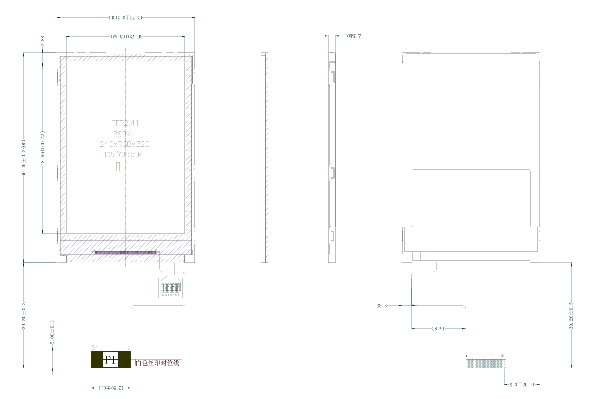2,4'' normálně bílý malý TFT LCD zobrazovací modul TF využívá režim zobrazení „bílý režim“, který poskytuje vysoké rozlišení 240×RGB×320 pixelů a podporuje 8/16bitové paralelní rozhraní (časování 8080) MCU, kompatibilní s řadou mikrokontrolérů.